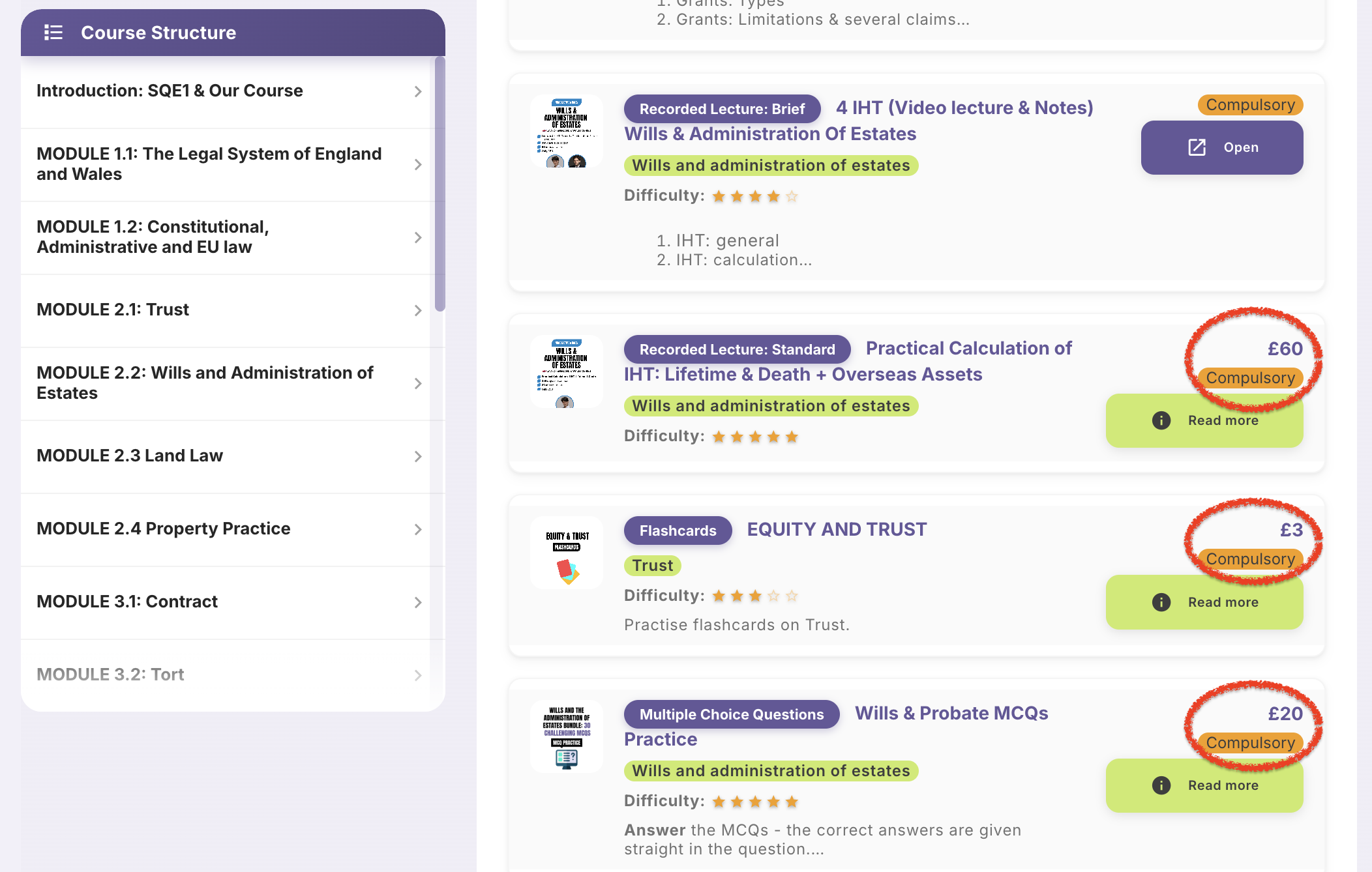 Each course contains only the essential, compulsory components we have identified as necessary for effective preparation. This ensures you do not pay for content you do not need.
